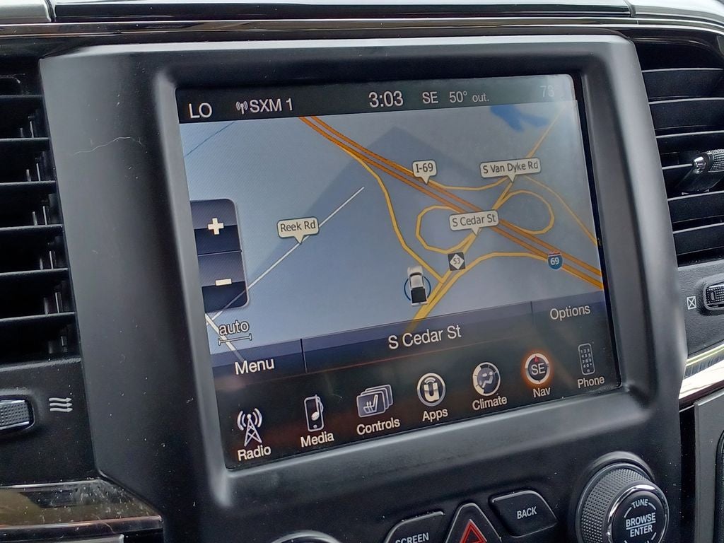 Ram 2017 1500 Sport 20 x 9 Polished Aluminum Wheels, 3.21 Rear Axle Ratio, 9 Alpine Speakers w/Subwoofer, Adjustable pedals, Audio Jack Input for Mobile Devices, Auto High Beam Headlamp Control, Automatic temperature control, Class IV Receiver Hitch, Compass, Convenience Group, Dual front impact airbags, Dual front side impact airbags, Dual Rear Exhaust w/Bright Tips, Folding Flat Load Floor Storage, Front dual zone A/C, Front fog lights, Fully automatic headlights, Heated Front Seats, Heated Seats & Wheel Group, Heated Steering Wheel, Heavy-Duty Engine Cooling, Illuminated entry, Keyless Enter-N-Go, Leather steering wheel, Next Generation Engine Controller, Outside temperature display, ParkSense Front/Rear Park Assist System, ParkView Rear Back-Up Camera, Power driver seat, Premium Sound Group, Quick Order Package 26L Sport, Radio: Uconnect 3C w/8.4 Display, Rain Sensitive Windshield Wipers, Rear 60/40 Split Folding Seat, Rear step bumper, Remote keyless entry, Remote Proximity Keyless Entry, Sport Performance Hood, Steering wheel mounted audio controls, Tilt steering wheel. 4D Crew Cab Brilliant Black Crystal Pearlcoat HEMI 5.7L V8 Multi Displacement VVT 8-Speed Automatic 4WD Odometer is 31649 miles below market average! Priced below KBB Fair Purchase Price!