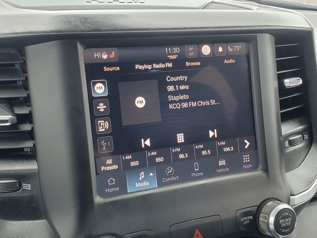 Ram 2022 1500 Big Horn/Lone Star 115V Auxiliary Power Outlet, 115V Auxiliary Rear Power Outlet, 2nd Row In Floor Storage Bins, 3.21 Rear Axle Ratio, 400W Inverter, 4G LTE Wi-Fi Hot Spot, 8.4 Touchscreen Display, 9 Amplified Speakers w/Subwoofer, Air Conditioning ATC w/Dual Zone Control, AM/FM radio, Apple CarPlay, Auto-Dimming Exterior Driver Mirror, Auto-Dimming Rear-View Mirror, Big Horn Badge, Big Horn Level B Equipment Group (DISC), Black Premium Power Mirrors (GUL), Bluetooth® Handsfree Phone & Audio, Class IV Receiver Hitch, Cluster 7.0 TFT Color Display, Connectivity - US/Canada, Exterior Mirrors Courtesy Lamps, Exterior Mirrors w/Supplemental Signals, Foam Bottle Insert (Door Trim Panel), For More Info, Call 800-643-2112, Fully automatic headlights, Glove Box Lamp, Google Android Auto, Heated Front Seats, Heated Steering Wheel, Illuminated entry, Integrated Center Stack Radio, Media Hub w/2 Charge Only USBs, Outside temperature display, ParkSense Front/Rear Park Assist w/Stop, ParkView Rear Back-Up Camera, Power 2-Way Driver Lumbar Adjust, Power 8-Way Driver Seat, Power Adjustable Pedals, Quick Order Package 25Z Big Horn, Radio: Uconnect 3 w/5 Display, Radio: Uconnect 5 W w/8.4 Display, Rear Dome w/On/Off Switch Lamp, Rear Power Sliding Window, Rear Underseat Compartment Storage, Rear Window Defroster, Remote keyless entry, Remote Start System, Security Alarm, SiriusXM Radio Service, SiriusXM Satellite Radio, Sun Visors w/Illuminated Vanity Mirrors, Telescoping steering wheel, Tilt steering wheel, Universal Garage Door Opener, USB Host Flip, Wheels: 20 x 9 Aluminum Chrome Clad (WRK). CARFAX One-Owner. 4D Crew Cab Flame Red Clearcoat HEMI 5.7L V8 Multi Displacement VVT 8-Speed Automatic 4WD